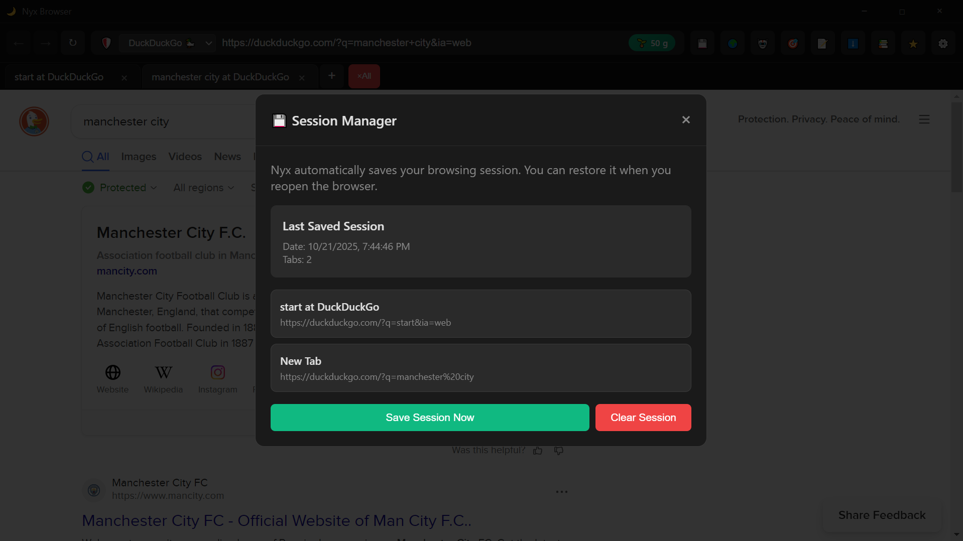๐ Nyx Protection โ Built-in tracker and ad blocking powered by Ghostery for a safer, faster, and cleaner browsing experience.